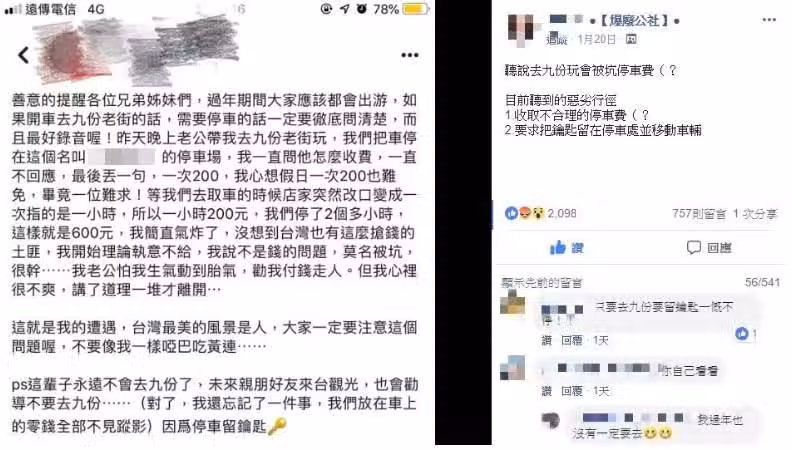 削翻了?九份停車場「1小時200」還要留鑰匙,準備離開「拿回愛車傻眼」:根本欺人太甚
