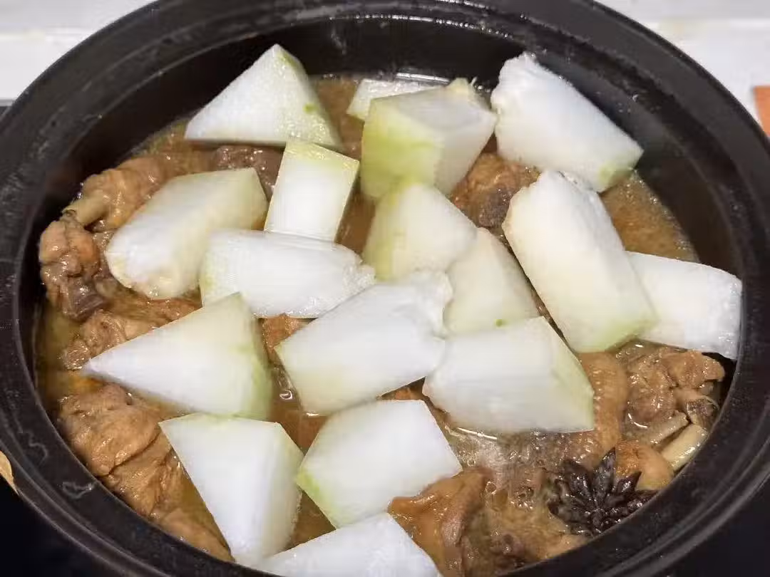 5、出鍋撒點香菜味道更好;以前總是拿蘑菇燉雞,但是沒有想到,用冬瓜燉雞肉真的超級下飯好吃,冬瓜吸收了雞肉湯汁,超級入味好吃,而冬瓜的水分綜合了雞肉的湯汁,這樣一鍋搭配米飯真的超級滿足!
