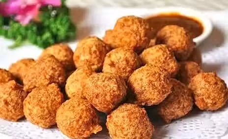 7、取餡料用手團成圓形大小均等的丸子。