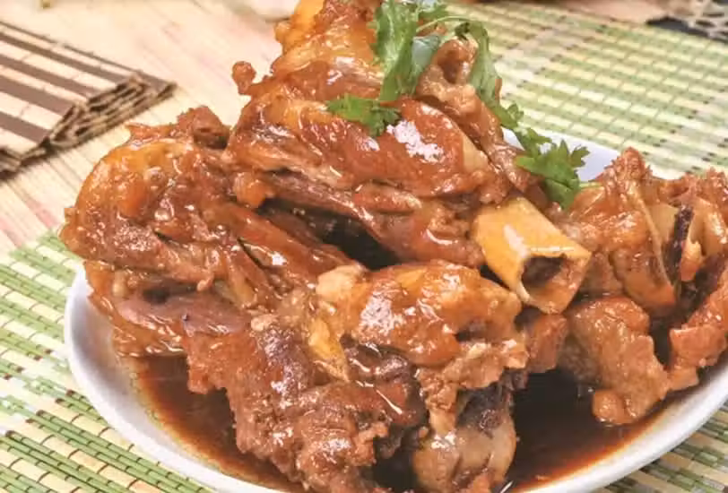 當第二個菜上來的時候,我更加鬱悶了,雖然是好料:醬大骨,但是我也吃不了,只能聞聞味道,第三道菜是紅燒肉,非常大塊又油膩,對我而言無法入口,等第四道菜端上來的時候,我更是無言,是一盤蒸蟹腿,我連蟹黃都吃不到,這個要吃的只能用嘴硬咬,於是我也是只能看著,不能吃。