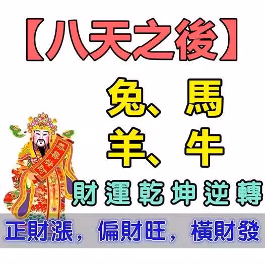 八天之後(兔、馬、羊、牛)正財漲,偏財旺,橫財發