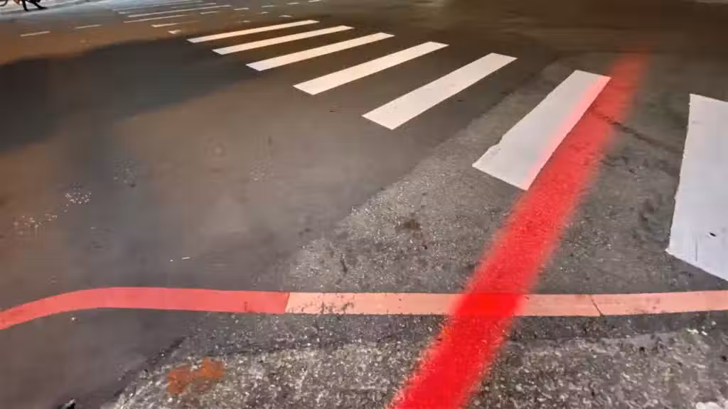 台中斑馬線新設投影紅綠燈,地板光源網友笑翻:過馬路要刷條碼