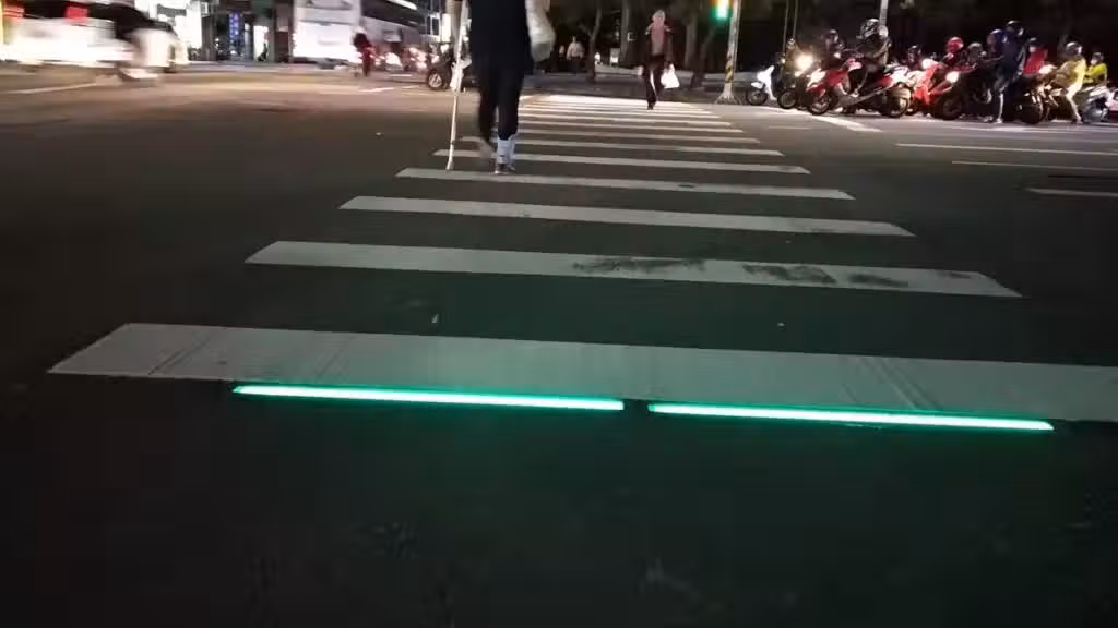 台中斑馬線新設投影紅綠燈,地板光源網友笑翻:過馬路要刷條碼