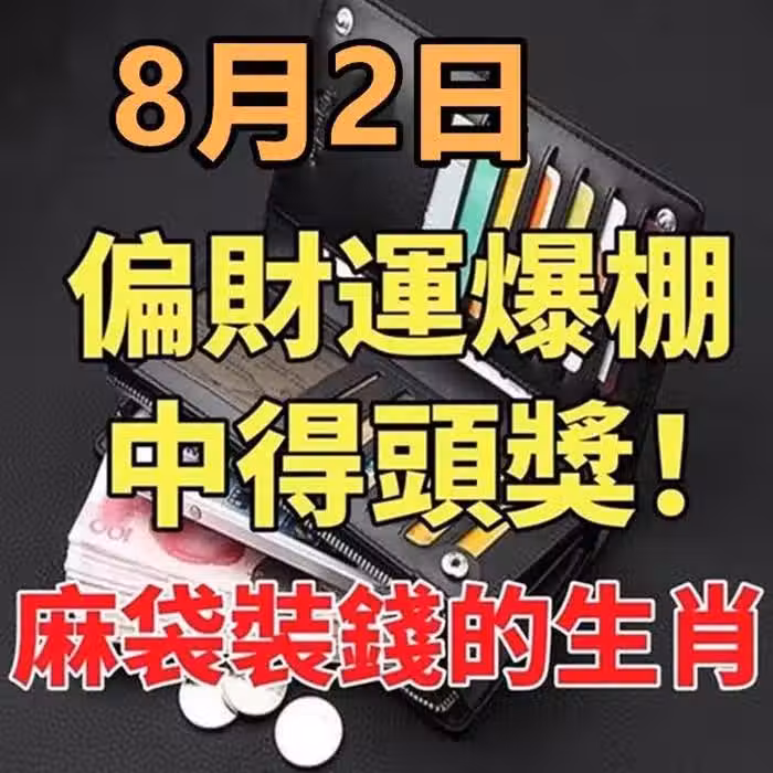8月2日,偏財運爆棚,中得頭獎!用麻袋裝錢的生肖!