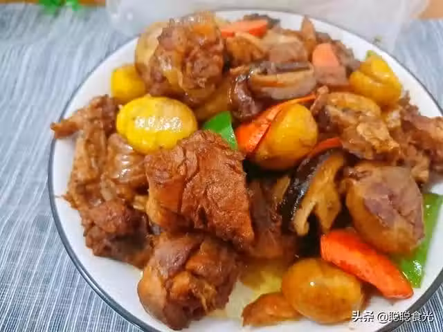 【食材】雞、板栗、青椒、紅椒、蔥、姜、蒜、生抽、鹽、白糖