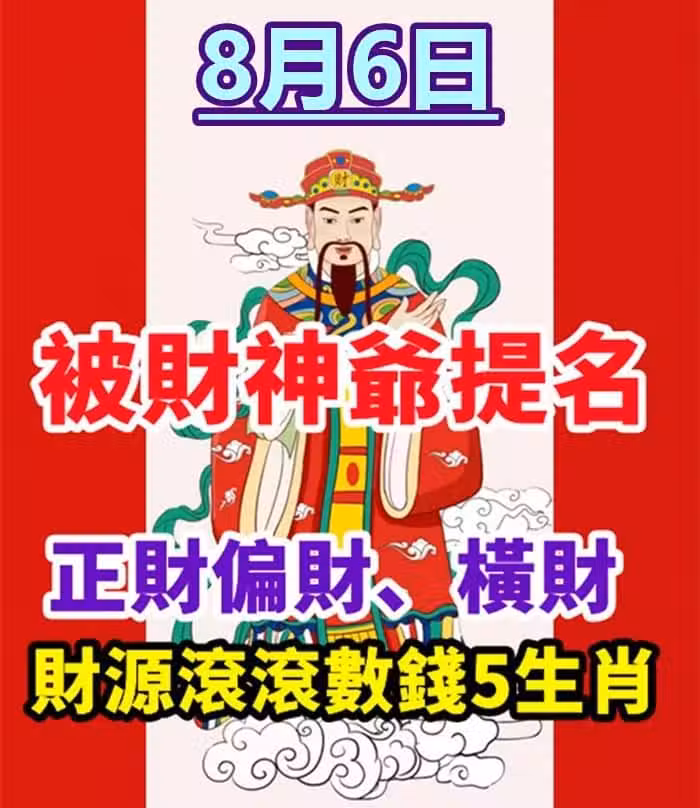 8月6日被財神爺提名,正財偏財、橫財,財源滾滾數錢的5大生肖