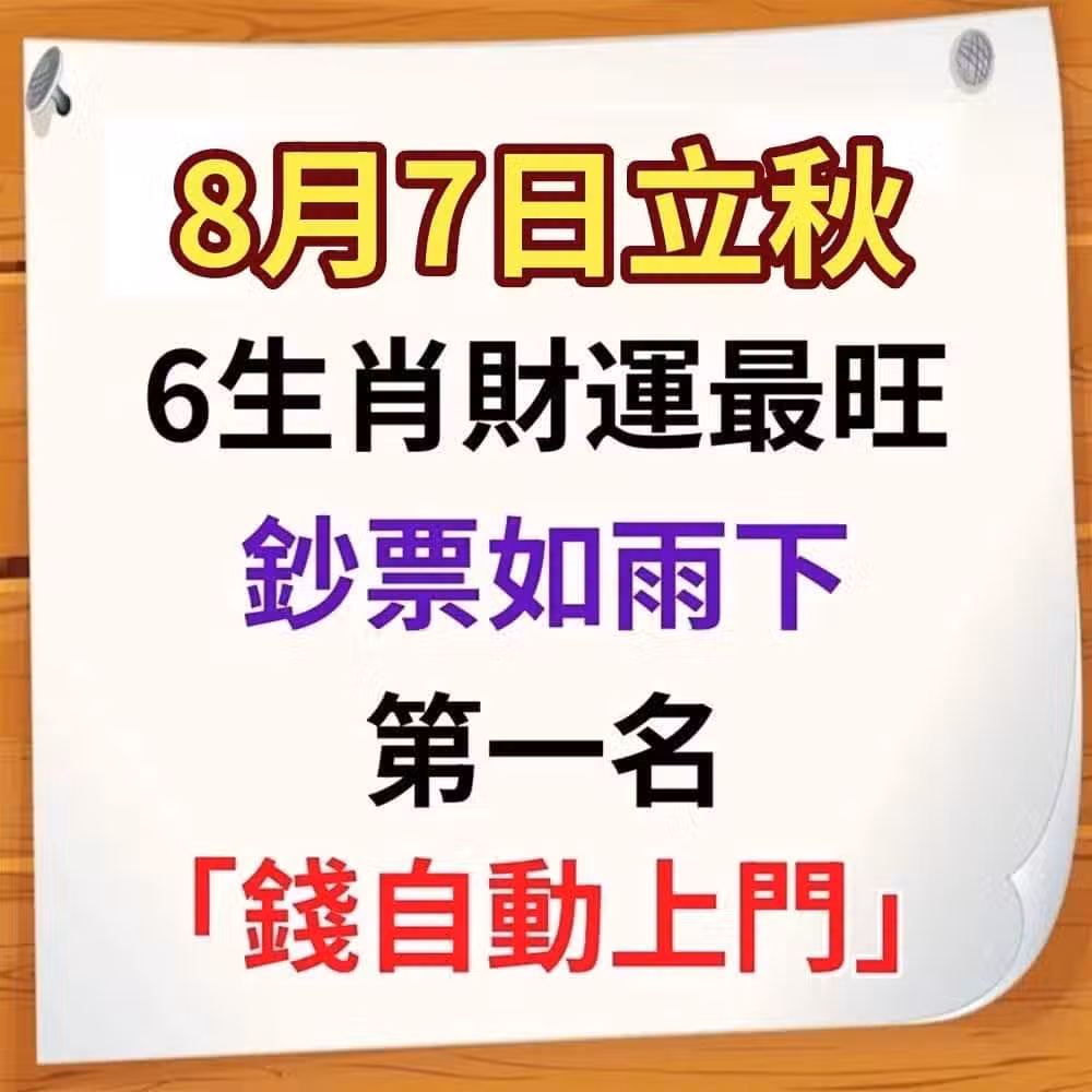 8月7日立秋有偏財,鈔票如雨下的生肖! 第1名「錢自動上門」