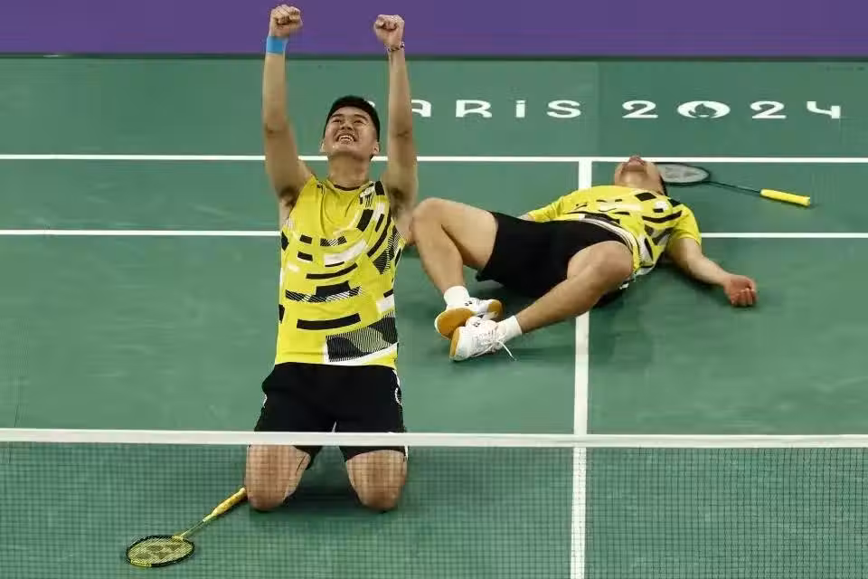 我國羽球黃金男雙「麟洋配」李洋、王齊麟於4日在巴黎奧運羽球男子雙打項目交手頭號種子中國組合梁偉鏗與王昶,在激戰三局後總以局數2比1贏得巴黎奧運的羽球雙打金牌,衛冕成功的李洋、王齊麟也成為奧運史上第一組羽球雙打項目連霸成功的「黃金組合」!