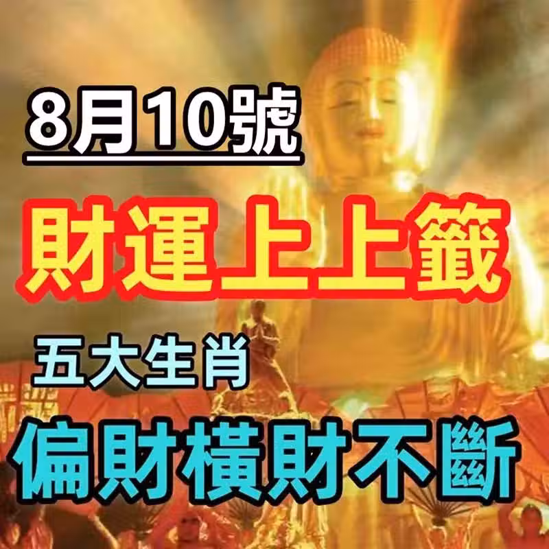 8月10號財運上上籤,偏財橫財不斷的五大生肖