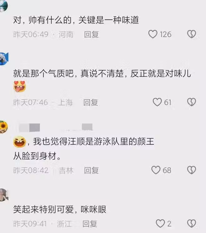 網友們在社交媒體上發表評論,許多人對潘展樂的評價表示認同,汪順的身材確實出色。還有人對中國游泳隊隊員之間的友好關係表示讚賞,認為這種團結和互贊的氛圍有助於隊伍的發展。