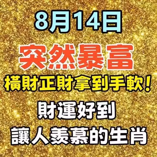 8月14日突然暴富,橫財正財拿到手軟!財運好到讓人羨慕的生肖
