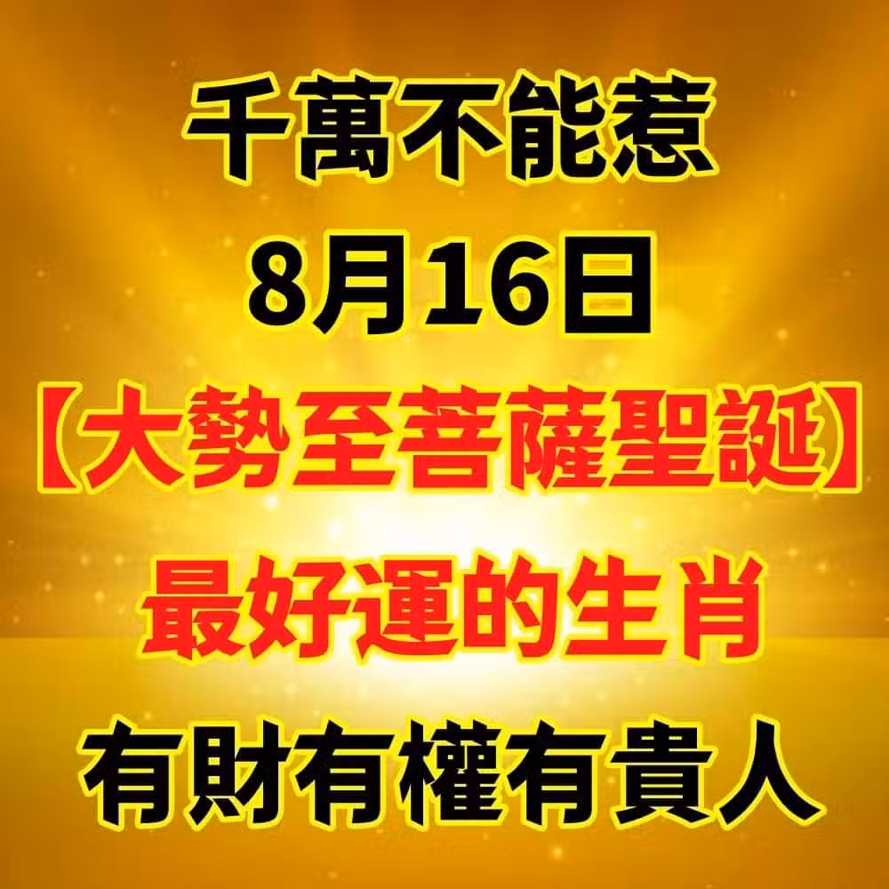 千萬不能惹!今天【大勢至菩薩聖誕】最好運的生肖,他們有財有權有貴人!