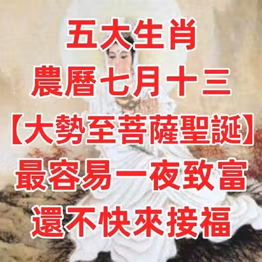 農曆七月十三【大勢至菩薩聖誕】最容易一夜暴富的生肖 還不快來接福