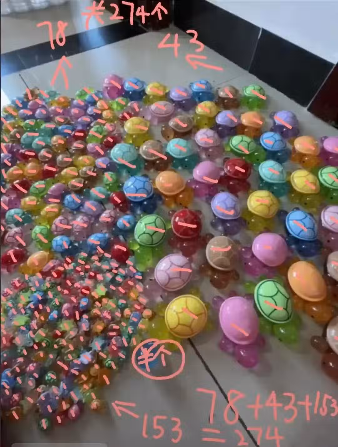 不僅在賽場上狂撿粉絲給投送的布娃娃,賽後也在狂拆粉絲送的包裹,那麼多烏龜就是全妹拆出來的驚喜盲袋烏龜對對碰。