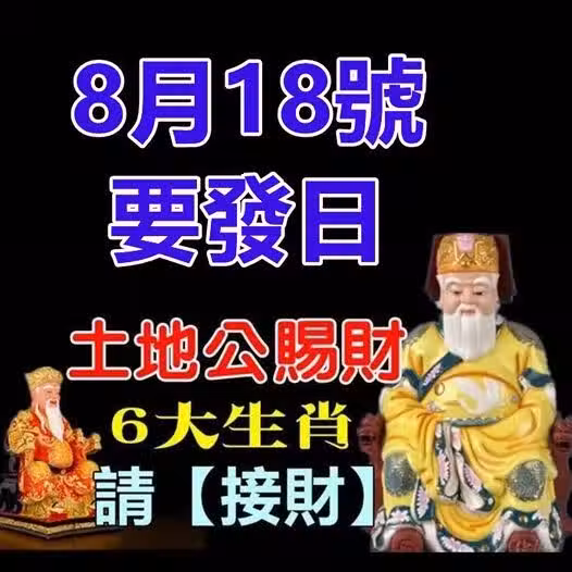 8月18號要發日,土地公賜財,六大生肖快來接財
