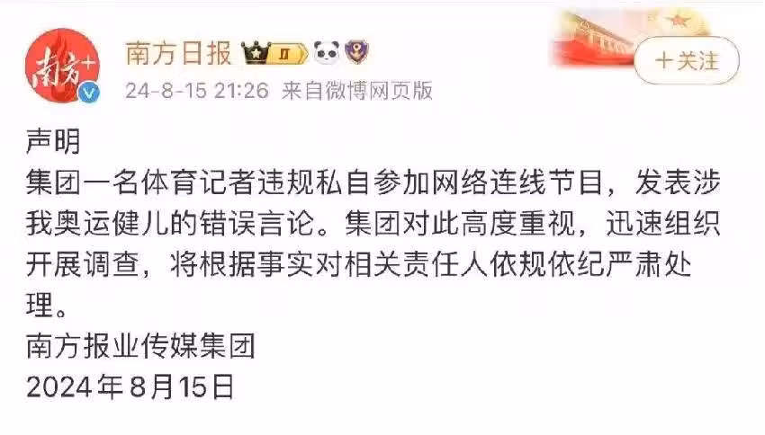 面對洶湧的輿論壓力,南方報業傳媒集團迅速發表聲明,表示將對該記者的行為進行調查,並依規依紀嚴肅處理。