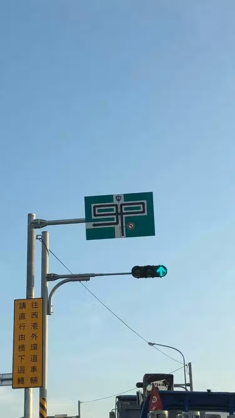 從照片中可以看到,這條道路的左轉路線異常複雜,竟需要七段式轉彎才能到達目