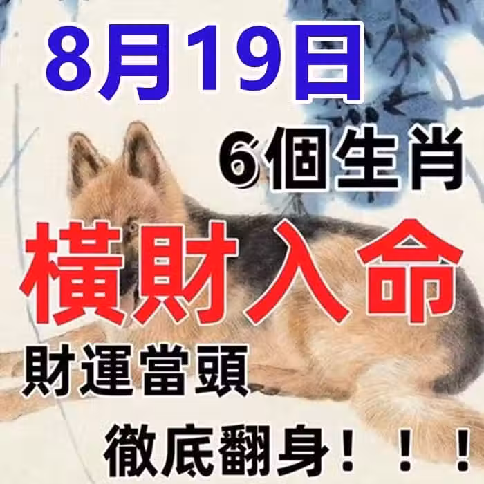 8月19日一筆橫財入命,6個生肖財運當頭,徹底翻身!