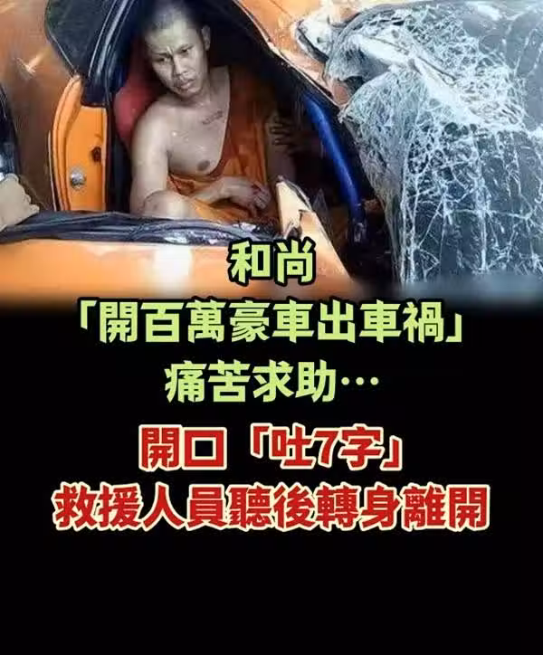 和尚「開百萬豪車出交通事故」痛苦求助…開口「吐7字」救援人員聽後轉身離開