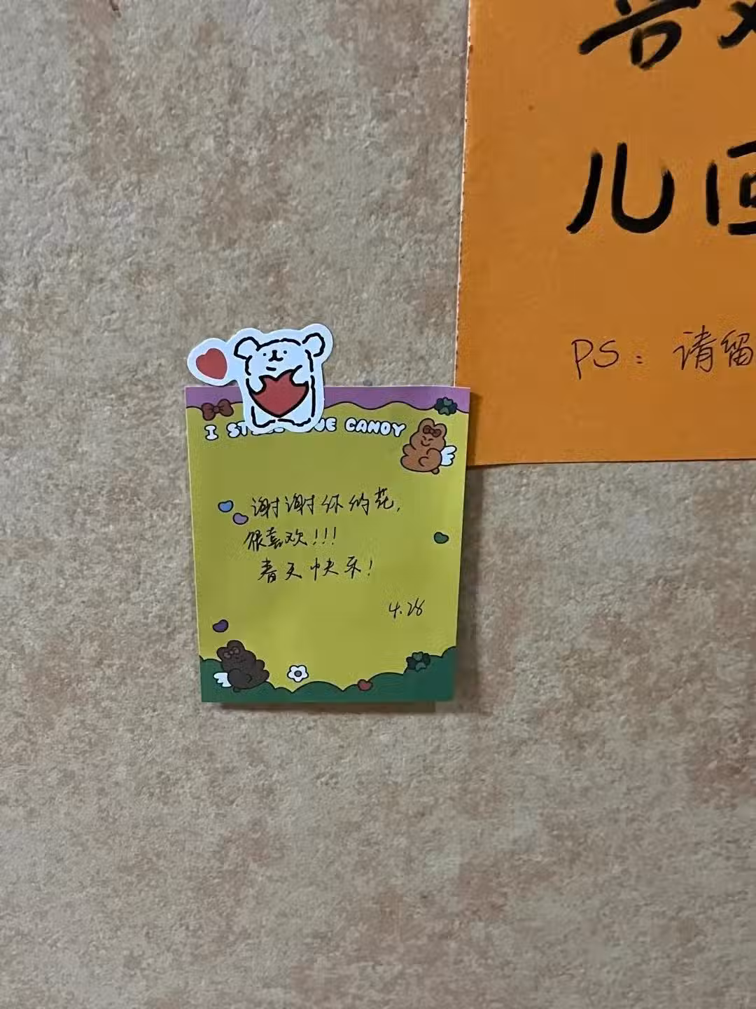 萬萬沒想到,幾天以後這位鄰居又放了新的橘色花束,而這次又有其他人寫了紙條傳達謝意,「謝謝你的花~花很好看!祝你在浪漫的春天諸事順遂。」鄰居之間的溫暖互動也讓原PO再度融化,「一個普通的一天,素未謀面的鄰居分享了她的春天給大家,讓所有看到的人在內心也開出了一朵美好的小花...」