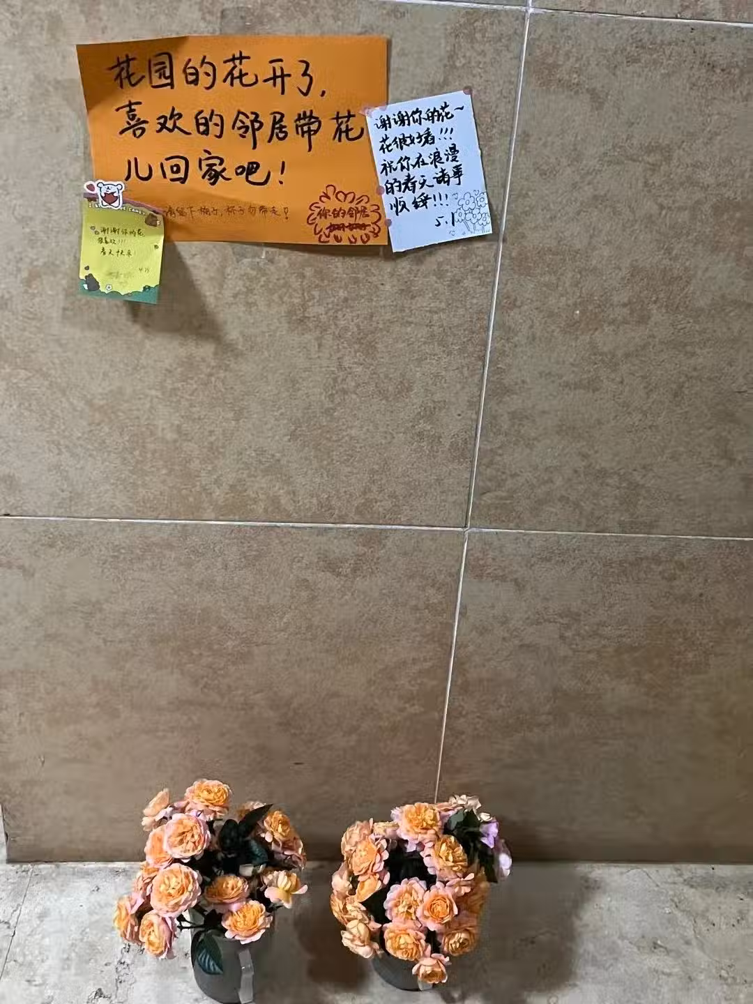 遇到神仙鄰居!走廊放鮮艷花朵「暖心送其他住戶」 幾天後「再度送上溫暖驚喜」她發現後被治癒