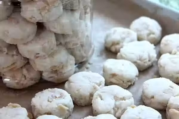 白油 180g 糖粉 90g 杏仁粒 (烘香) 150g 粟粉 140g 特幼麵粉 100g 杏仁粉 180g 蘇打粉 ½ 茶匙