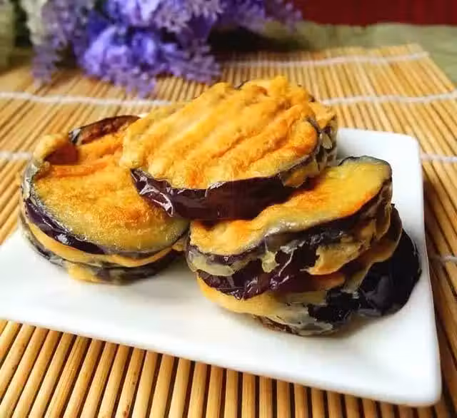 食材: 長茄子1 植物油1湯匙 食鹽1/2茶匙 麵粉80克 澱粉1湯匙 水適量 做法: 1、長茄子不要去皮,洗凈,瀝干水分,切片。 2、茄片里調入適量鹽,腌制10分鐘後,倒掉茄子水。 3、乾淨碗里倒入適量麵粉,兌入水,調入1湯匙澱粉,攪拌成麵糊。 4、電餅鐺刷上適量植物油,電源開啟,上下開關一起打開,然後預熱。 5、茄片掛上面糊,放入電餅鐺,合上蓋子,選擇「煎餅」功能。 6、煎好後,給茄餅刷一層油,翻面,再煎1分鐘即可。