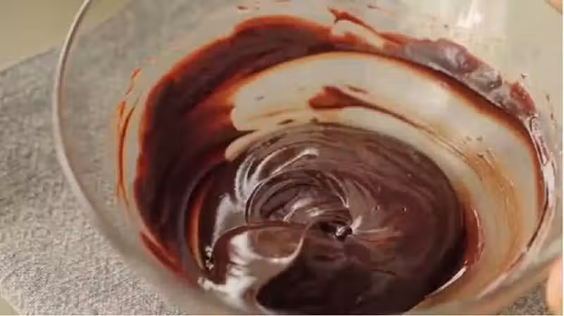 淡奶油打發至5分發,將黑巧液倒入,快速攪拌至順滑均勻,如下狀態: