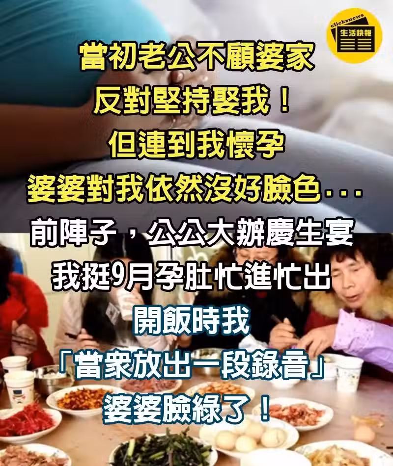 給公公慶生!我挺孕肚幫忙做家宴,開飯時我放「一段錄音」,婆婆臉都綠了