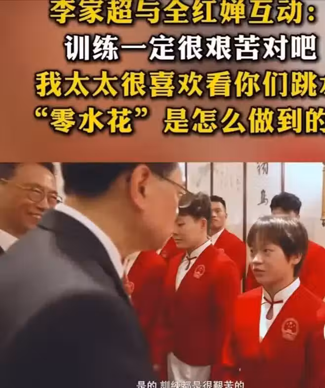 香港特區行政長官李家超親自出馬,與全妹攀談:訓練一定很苦,對吧?我太太很喜歡看你們跳水,你的壓水花技術是怎麼做到的。