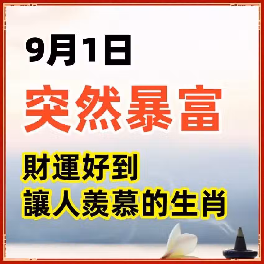 9月1日突然暴富,財運好到讓人羨慕的生肖!