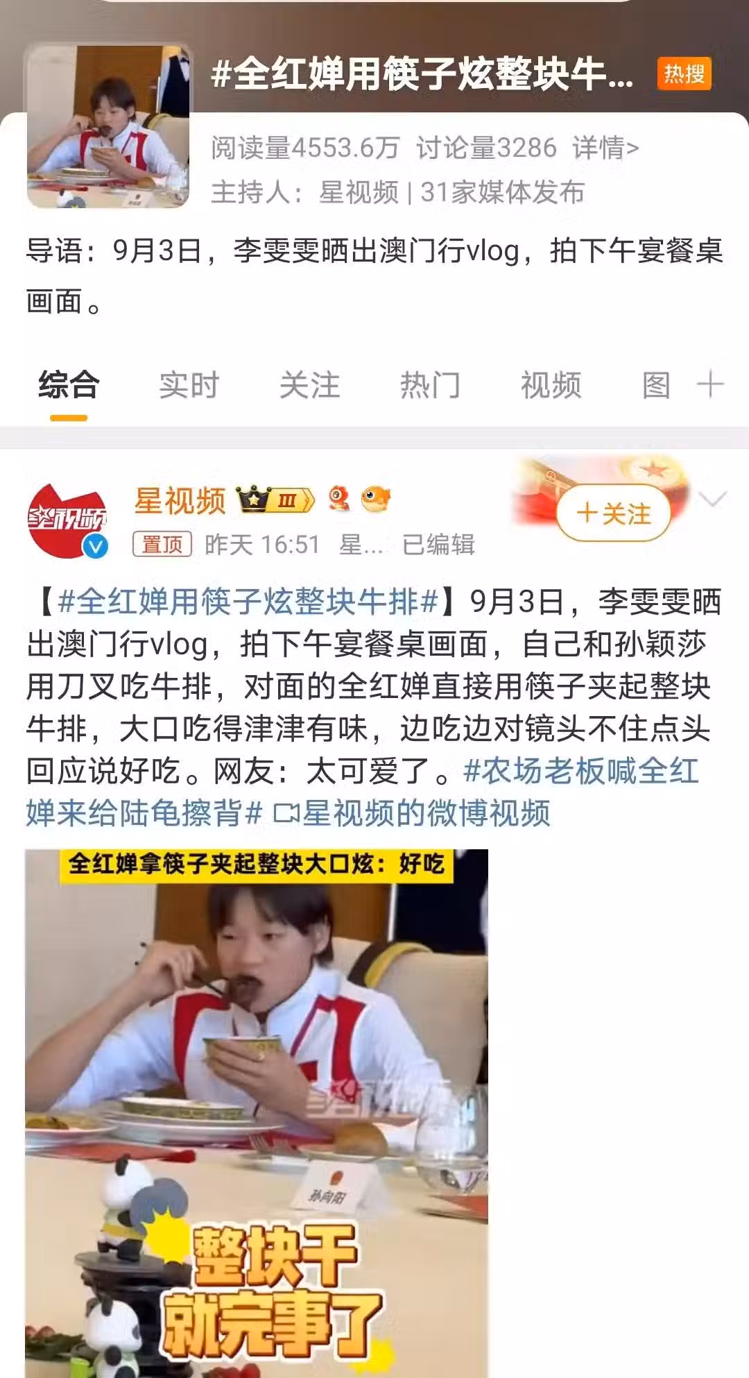 全紅嬋筷子吃西餐引關注,餐桌舉止展露真性情,不拘小節獲贊