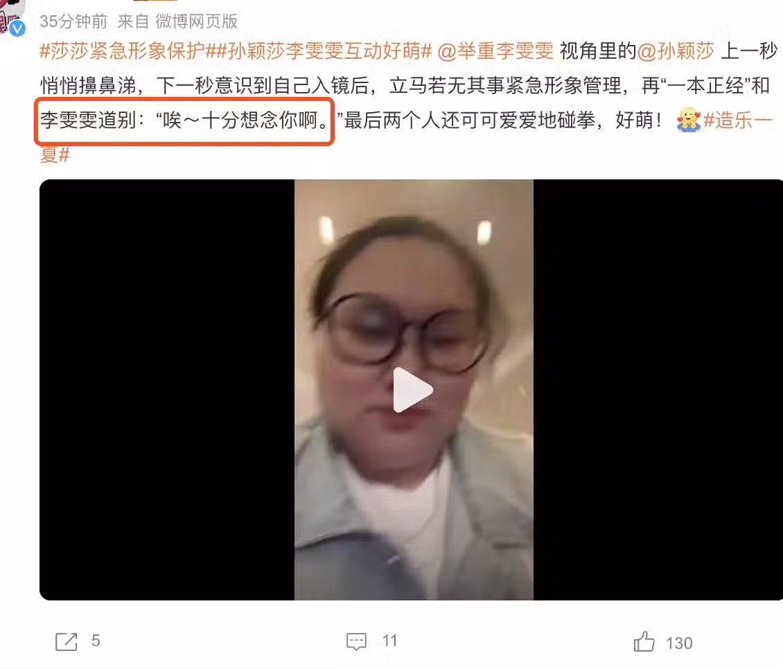 從中其實我們可以看到,李雯雯應該是不堪忍受這些極端粉絲的攻擊,所以暫時讓這些視頻消失了,但是她還是珍惜這份友誼,所以以後有機會還會把這些視頻放出來。另外一方面,孫穎莎在最新的告別視頻當中也點名喊話感謝李雯雯,說自己不捨得李雯雯,字裡行間都表達了對李雯雯的感謝。我們也希望李雯雯能夠感受到莎莎這一份真情。繼續保持她非常樂天派的性格,以後做一個快樂的姑娘。返回搜狐,查看更多