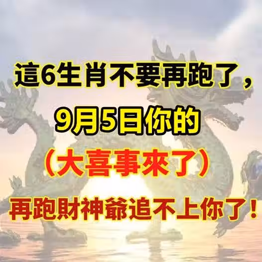 這六大生肖不要再跑了,9月5日你的(大喜事)來了,再跑財神爺追不上你了!