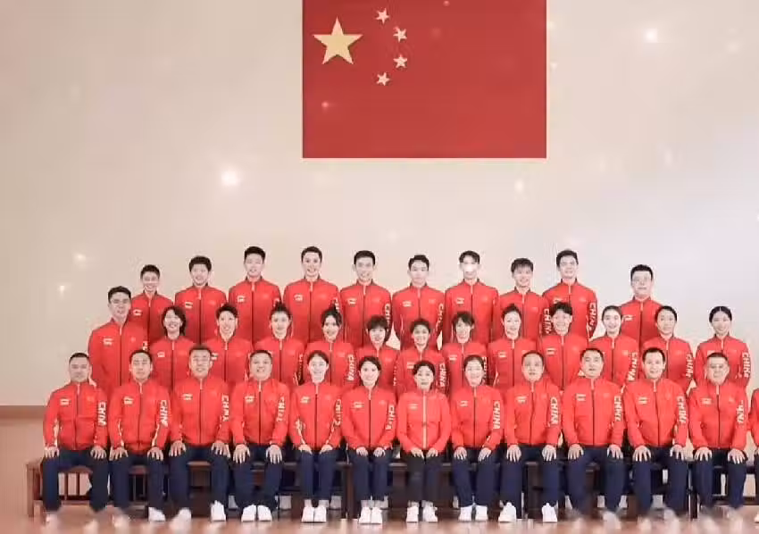 中國跳水隊大合照上,除了站在C位的全紅嬋,就是緊挨著周繼紅坐的陳若琳。