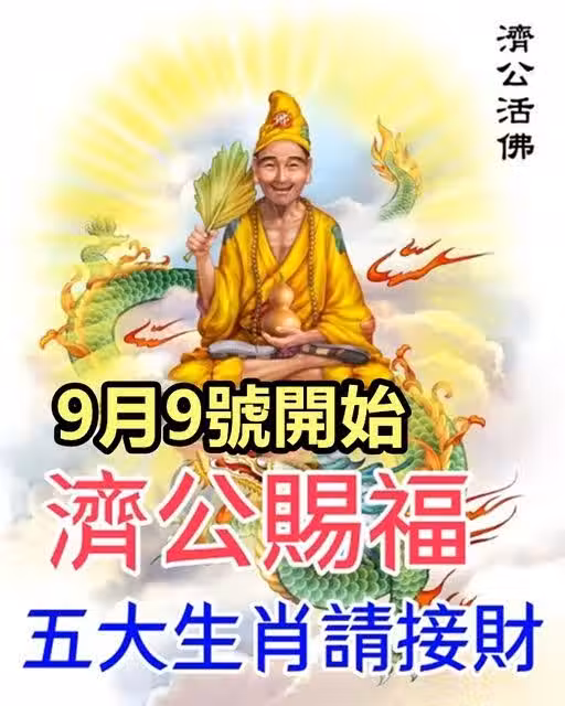 9月9號開始濟公賜福,五大生肖請接財