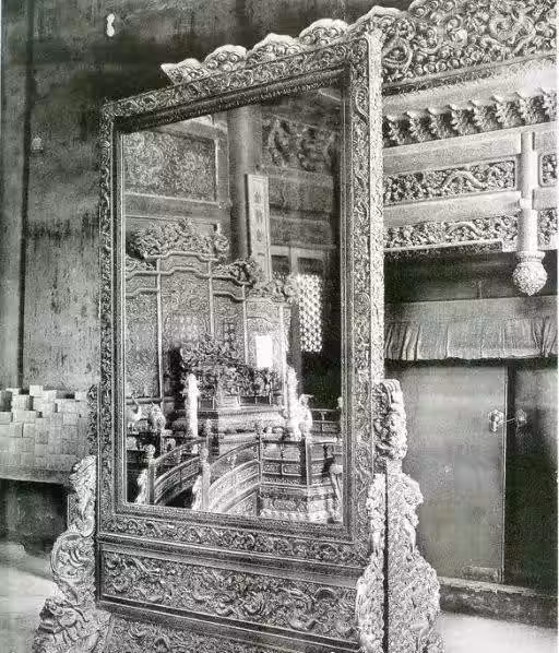 乾清宮東側紫檀雕龍大鏡。當時那麼大的鏡子裝飾十分精緻,彰顯皇家的奢華。
