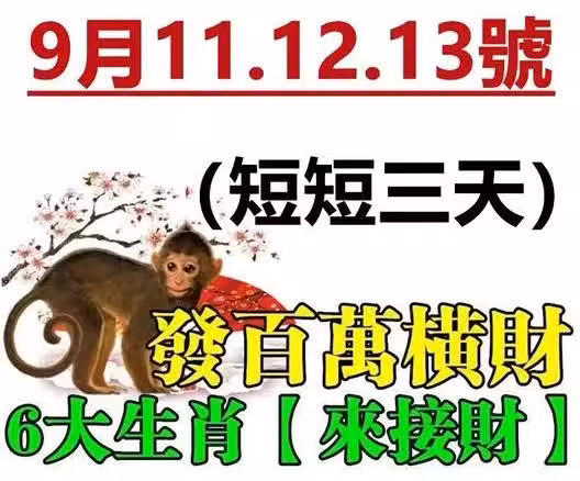 短短三天(9月11、12、13號)發百萬橫財,六大生肖來接財