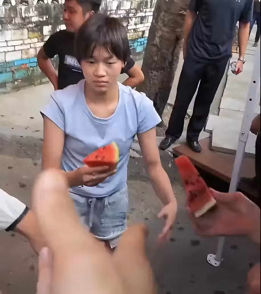暖心!全紅嬋請群眾吃西瓜+給奶奶一沓現金,和哥哥騎電動車出行