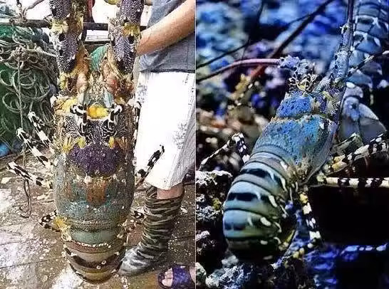 漁民捕到一頭六公斤重的「七彩龍蝦」,身體加觸鬚長達113cm,1天後竟賣出600000!