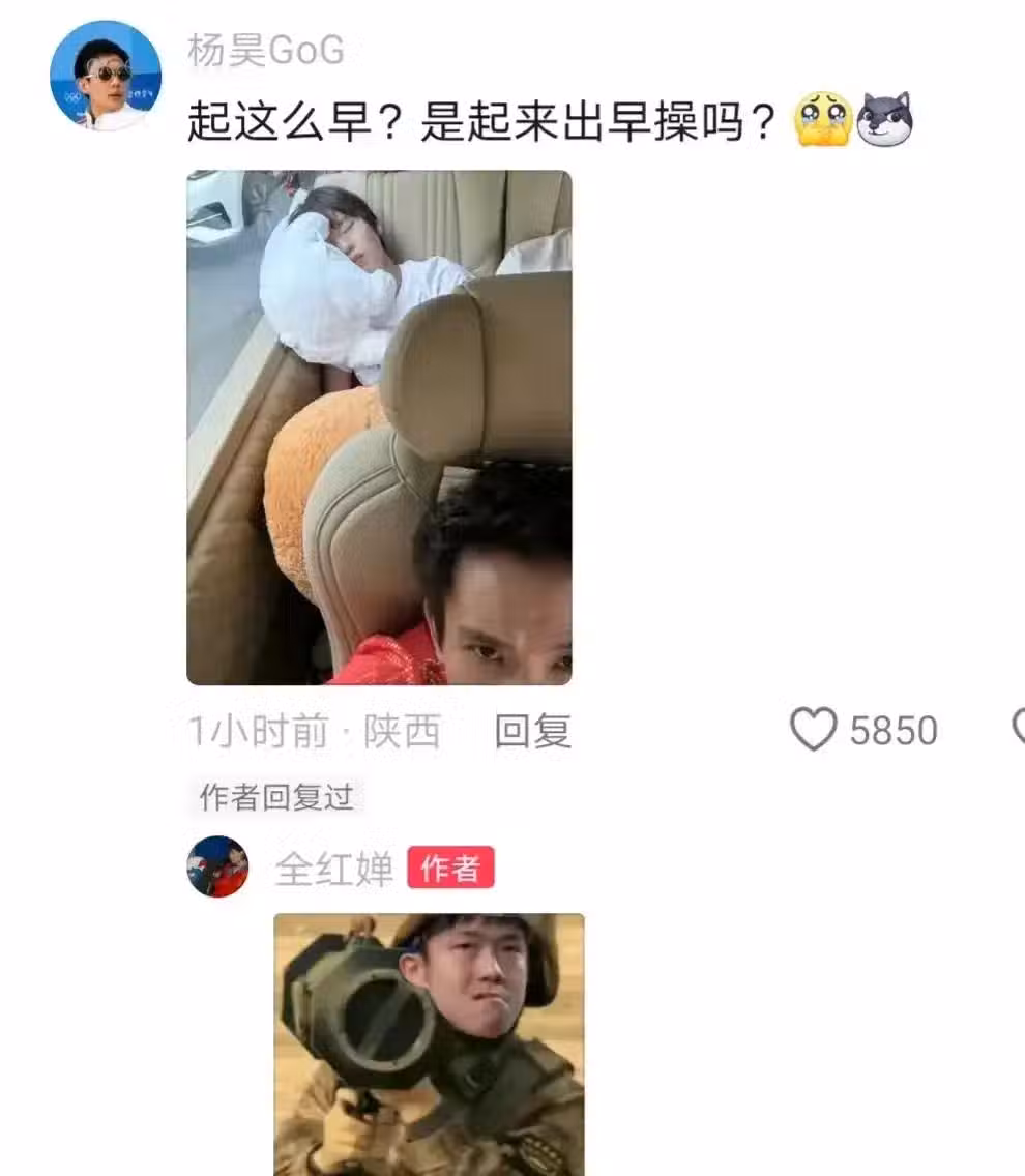 後來看到大頭也來給全紅嬋留言:「不回北京了,是吧妹妹,這麼大膽。」後來這條評論不見了,估計是被刪了,這一趟港澳行,全妹跟頭哥也混的很熟了,所以現在頭哥的表情包也用起來了。