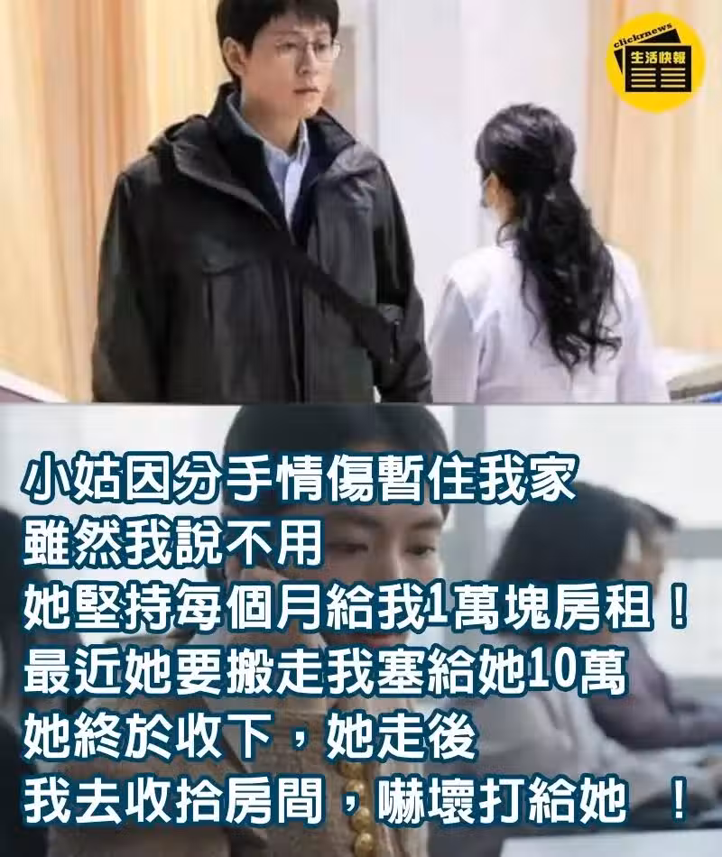 小姑因分手情傷暫住我家,家裡也熱鬧很多,雖然我說不用「她還是堅持每個月給我1萬塊房租」!最近她要搬走「我塞給她10萬」她終於收下,她走後我去收拾房間「嚇壞打給她 」