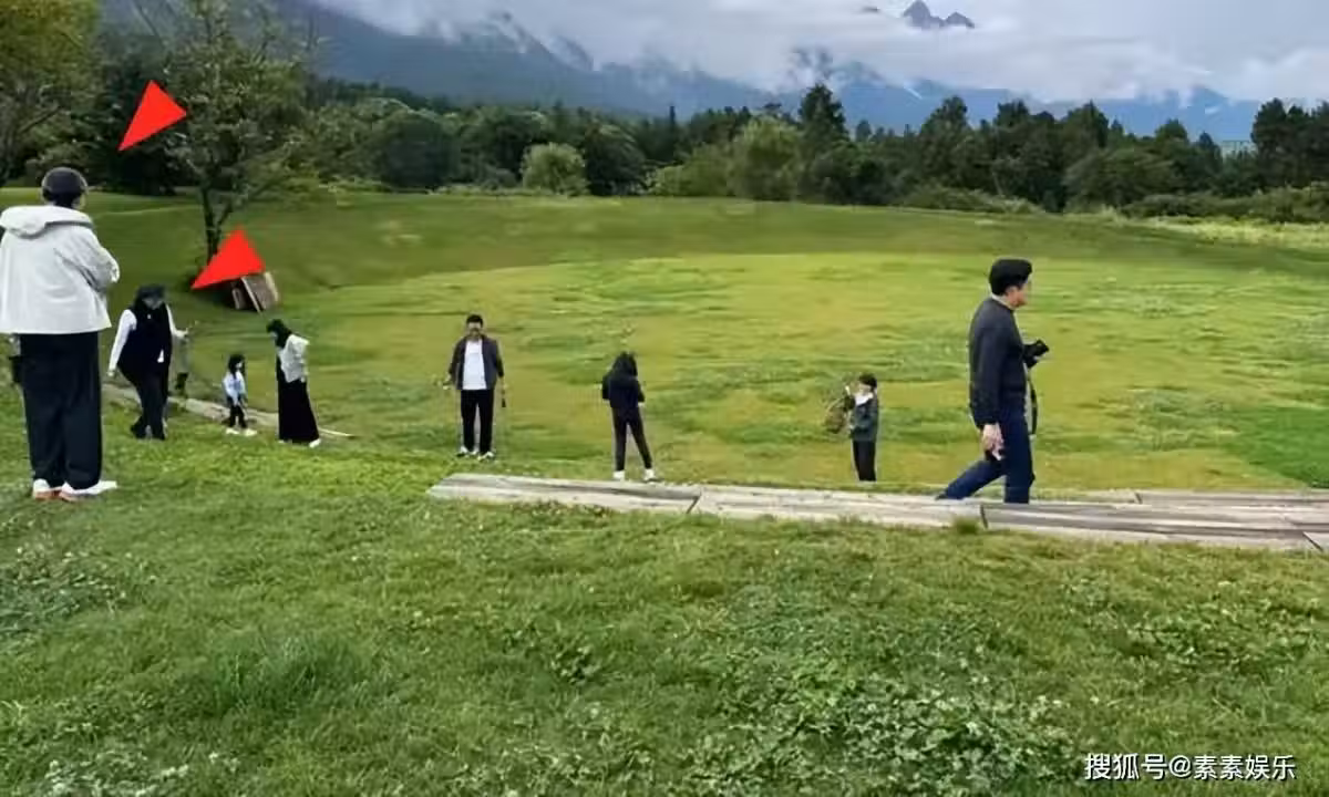 網友拍攝到霍啟剛手拿相機走在前面,郭媽媽和朱玲玲現身,原來是郭晶晶一起招呼老公為全家在雲南酒店的公園裡一起合影。