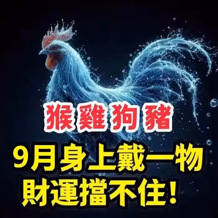 生肖「屬猴、屬雞、屬狗、屬豬人」9月身上戴一物,財運擋不住