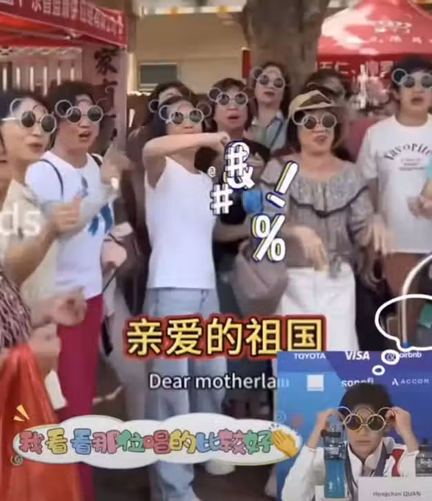 奇葩!一群大媽戴全紅嬋同款奧運五環墨鏡 打卡全妹家齊聲唱歌