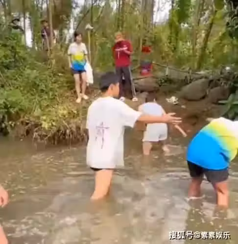仔細看,全紅嬋也加入其中,小夥伴們一起下河抓魚,哈哈,超有趣的畫面。