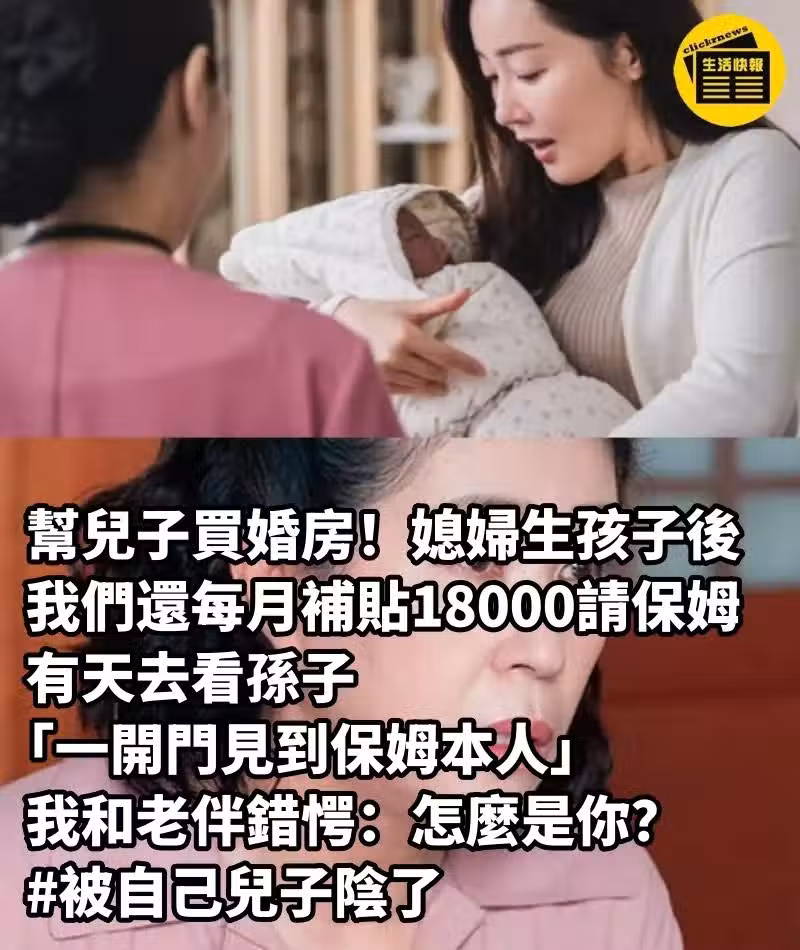 幫兒子買婚房!媳婦生孩子後「我們還每月補貼18000」請保姆... 有天去看孫子「一開門見到保姆本人」我和老伴錯愕:怎麼是你? #被自己兒子陰了