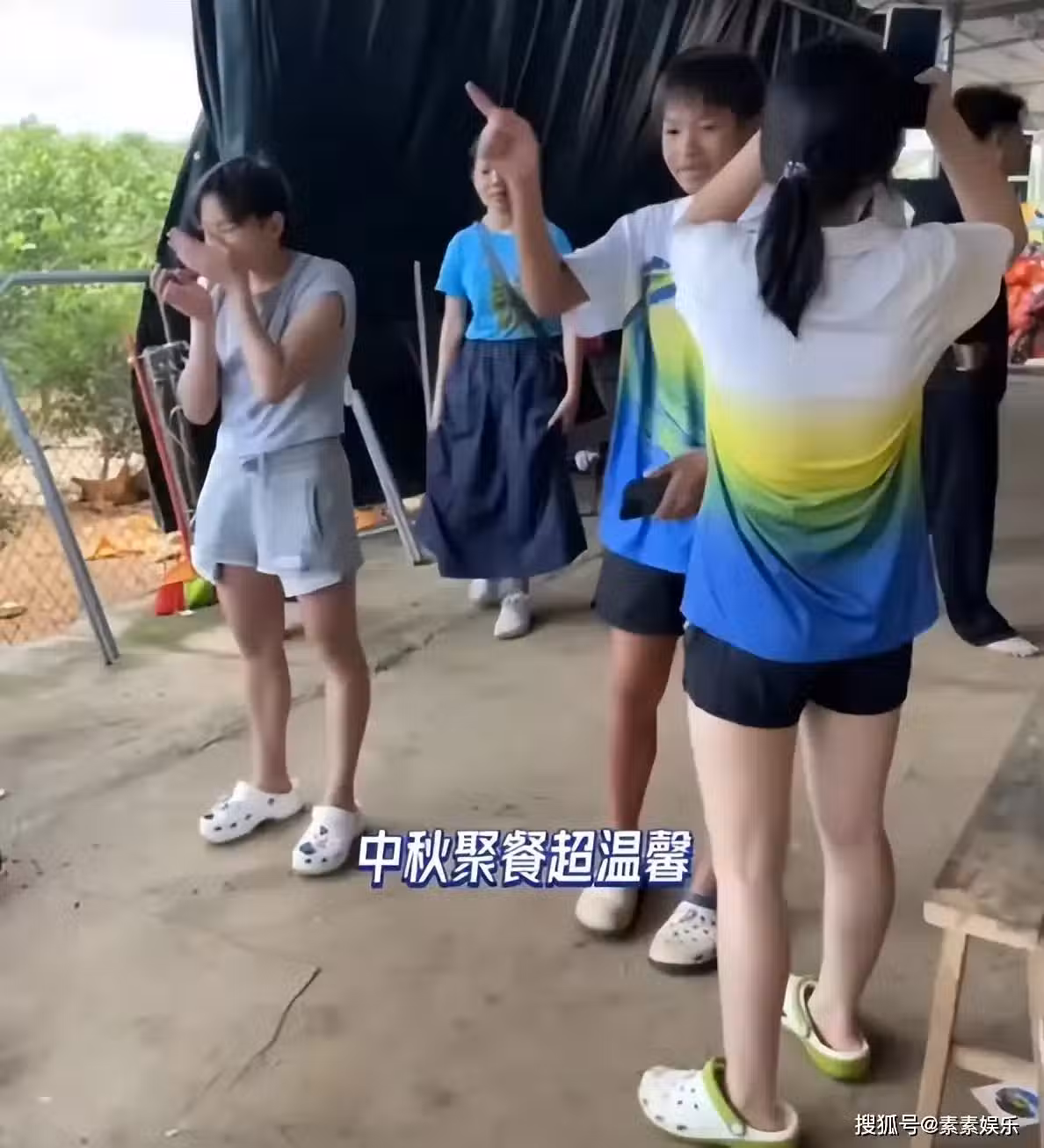 鏡頭之中的全紅嬋站在弟弟和妹妹身邊,一家人好開心啦。