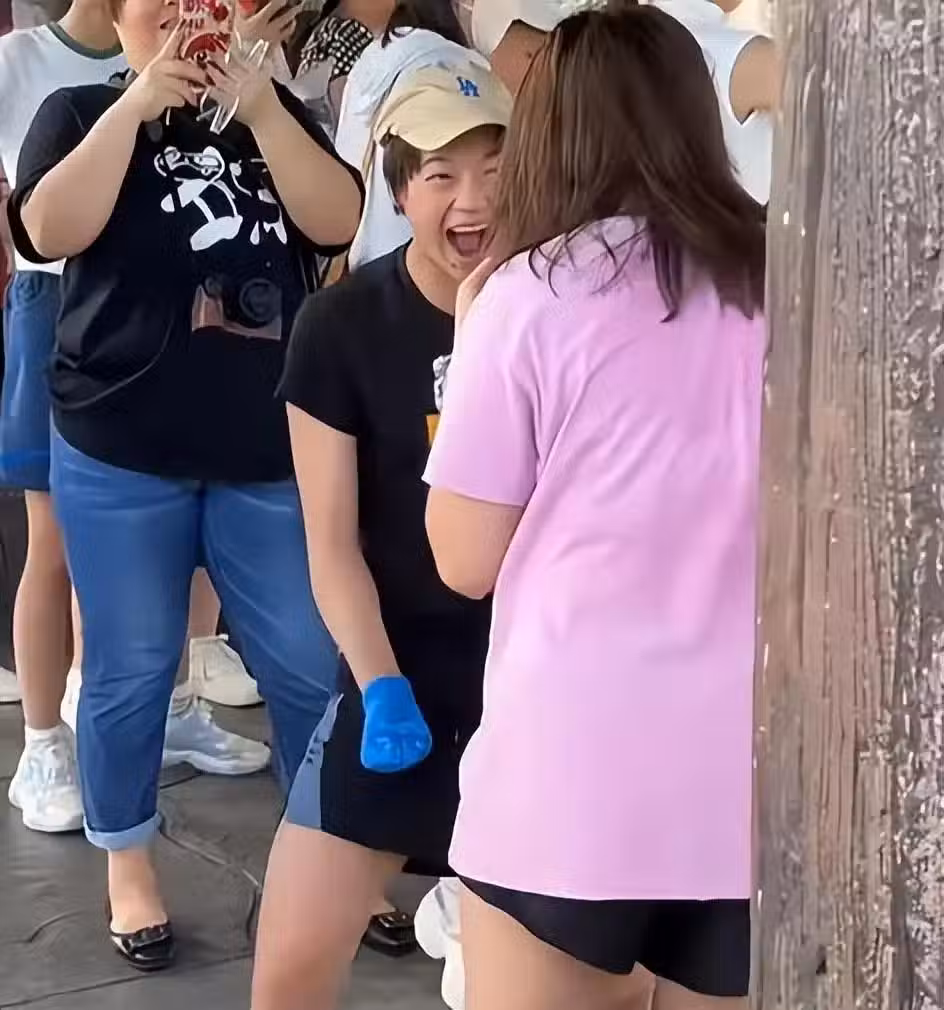 當時她拿著食物投給動物吃的時候,興奮的全紅嬋和閨蜜一起開心燦笑了起來。仔細看她的表情,超級開心和享受這一種狀態,她真的太可愛了。