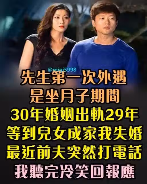 先生第一次外遇是坐月子期間,30年婚姻出軌29年,等到兒女成家後 我失婚,最近前夫突然打電話…我聽完冷笑回報應!